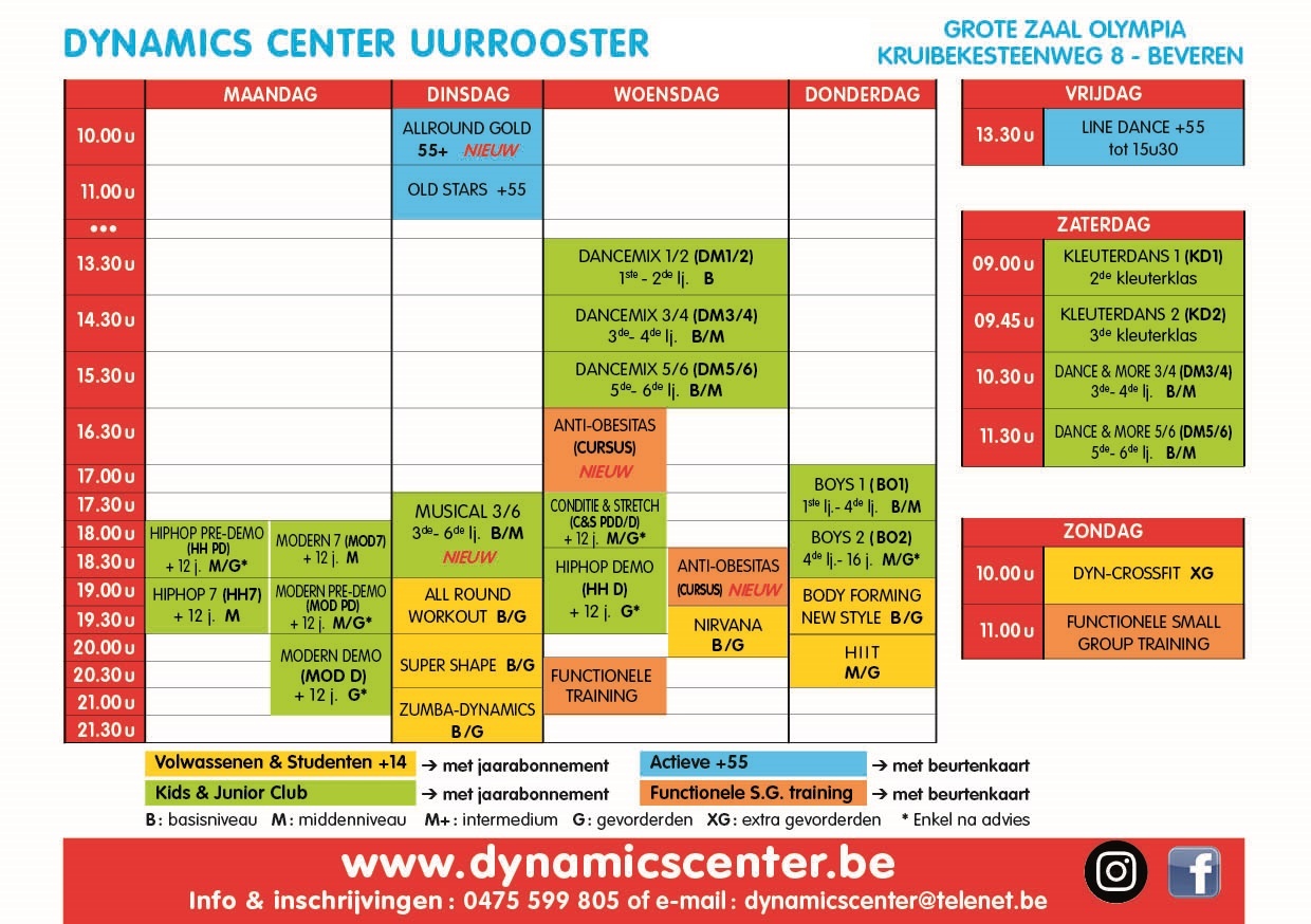 - voor de volwassenen en de Actieve 55+ lessen: inschrijvingen open, info en uren hier